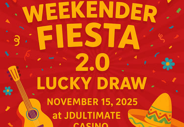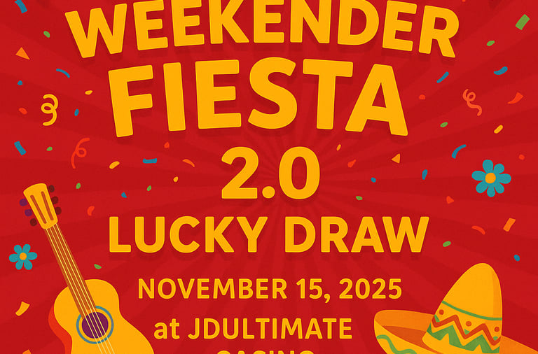 JDULTIMATE CASINO has always been known for its passion for thrilling, player-focused events — and the Weekender Fiesta 2.0 Lucky Draw is the perfect example of that commitment. This event is a weekend-long festival celebrating both fun and fortune, where every spin and every play gives participants a chance to win incredible prizes.